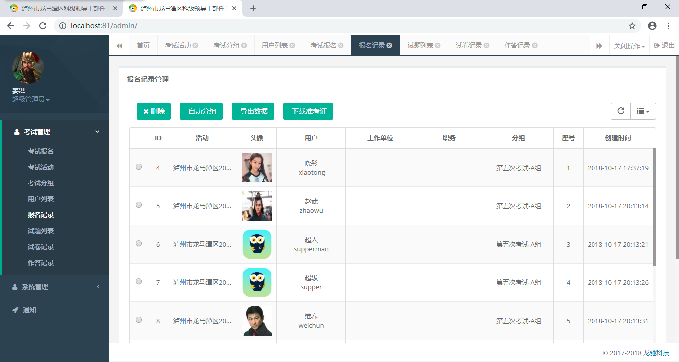 7、考試結束,管理人員隨即可在后臺導出排名好的成績(jì)表,方便進(jìn)行后續工作。